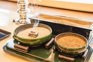 気になって中に入ってみると、屋敷の家来がうやうやしく取り次いで、殿さまがたすき掛けであんをこしらえていたり、姫君が小笠原流で汁粉を運んできたりと、場違いな雰囲気の汁粉屋でした。