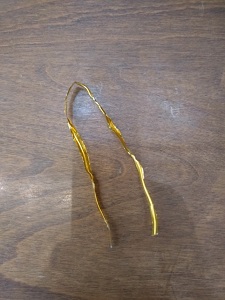 キャンディーやパンの袋などを閉じる、金色の「ツイストタイ」というもの。よく見かけるやつですね。