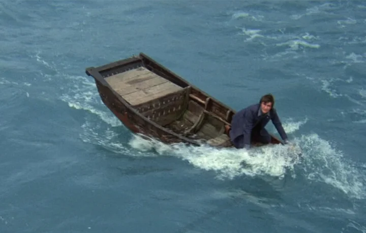 そのせいか、もとは若侍を岸に揚げた後、老人は、佐々木巌流(小次郎)がしつこく立ち合いを挑む相手を小島に揚げたまま舟を返して勝負をしなかった、という故事(物語)を物語ります。そんな場面がありました。